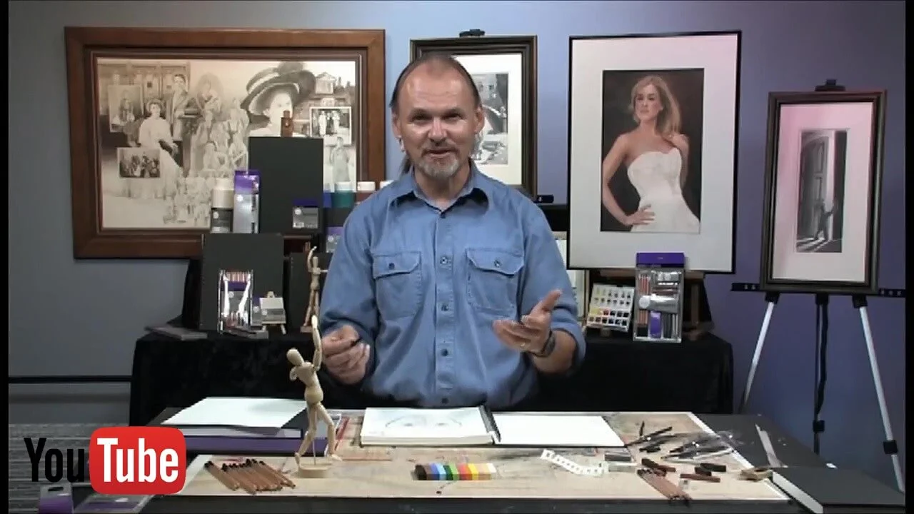 In the video art tutor Dan Nelson gives us a short overview over the materials in a beginner’s art kit and lets us in on the way that professional artists hold and move their tools when drawing.